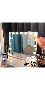 This vanity mirror with lights has 15pcs non-replace LED bulbs providing a large and bright viewing, bulbs are plastic cover,they won't easily crack and cut your hand. Adjustable brightness and 3 lights colors (day light、cool white、warm yellow) helping you achieve a flawless professional makeup. Memory mode makes the light return to the brightness as same as when you turned off.