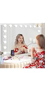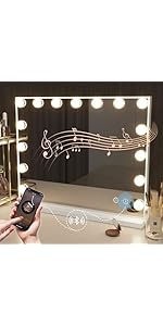 Hansong Vanity Mirror with Lights and Speaker22.8''x18.4'' Hollywood Makeup Mirror with 15 LED Bulbs Lighted Vanity Nakeup Mirror 3 Lighting Modes 10X Magnification White
