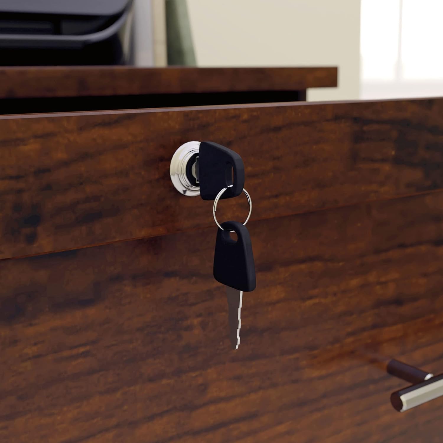 Whether you need to store important items or personal files, a dependable file cabinet is a must. The Realspace 2-Drawer Lateral File Cabinet features a key lock in the top drawer to keep your files secure. Its full-extension slides make it easy to reach legal- or letter-size files in the back of the drawer, and the engineered wood construction provides durability while still offering classic style. Configure your space using adaptable pieces to help you get organized. Engineered wood. 2 drawers with ball bearings and full-extension slides. Accepts letter- and legal-size files. Top drawer with a key lock. Interlocking mechanism allows only 1 drawer to be open at a time. Weight capacity per drawer tested to support 20 lb. Assembly required. Tested to meet ANSI/BIFMA Performance Standards - Manufacturer testing has been conducted on this product to meet specific performance requirements and safety standards set forth by the American National Standards Institute (ANSI) and the Business and Institutional Furniture Manufacturers. This product is heavy and/or oversized and may need more than one person to handle.