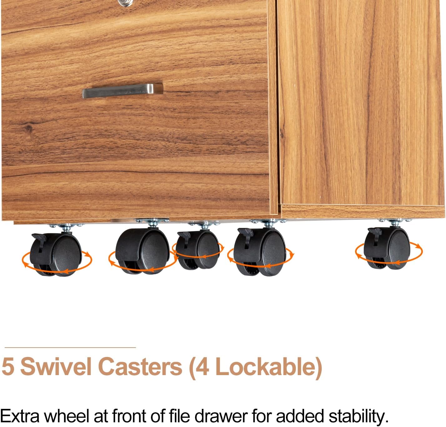 In addition to the central anti-tipping wheel, the other four wheels of this 2 drawer file cabient with lock are all lockable while the file cabinets in other stores only have two lockable wheels, so that your file cabinets are more flexible when moving and more stable after fixing.